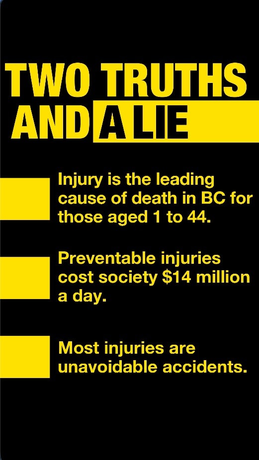 Injuries are the leading cause of death in British Columbia for people aged 1 to 44. We’re a non-profit that wants to stop these injuries from happening.
