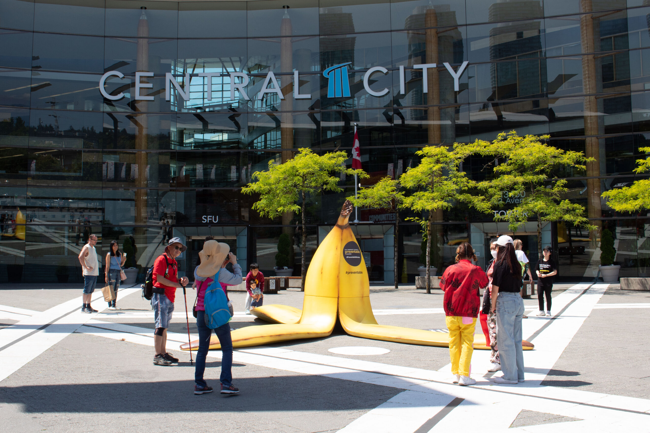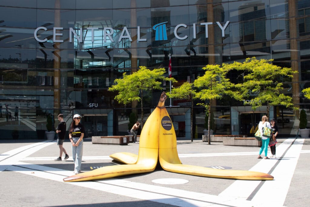 Collaborating with Central City and the BC Injury Research and Prevention Unit, Preventable brought back the Big Banana, an 8-foot-tall sculpture of a banana peel, to start a conversation about preventable injuries.